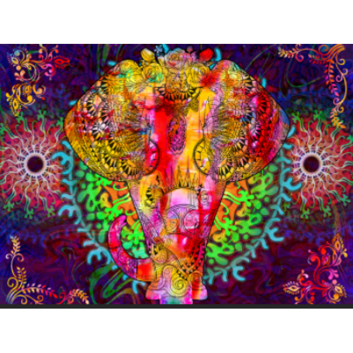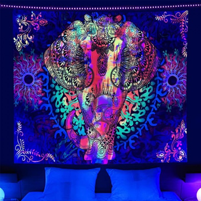 Elephant - UV Reactive Tapestry with Wall Hanging Accessories UK