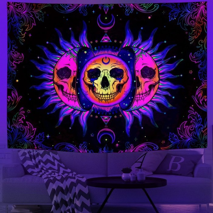 Moon Skull - UV Reactive Tapestry with Wall Hanging Accessories UK