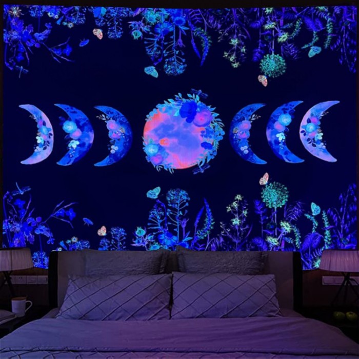 【Unique Design】Our luminous tapestries are printed with advanced HD printing technology, with high-definition patterns, bright colors and no fading. Fluorescent effects can fill your room or dorm with mystery and psychedelia, making a great decorative element for your room.