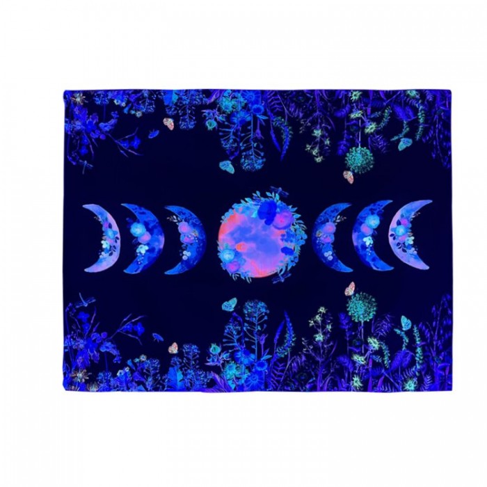 【Light Effect Response】 Using special ink and advanced thermal transfer technology, the fluorescent tapestry can glow under UV light in a dark environment, and the whole tapestry will look cool.