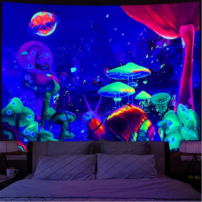 【Unique Design】Our luminous tapestries are printed with advanced HD printing technology, with high-definition patterns, bright colors and no fading. Fluorescent effects can fill your room or dorm with mystery and psychedelia, making a great decorative element for your room.