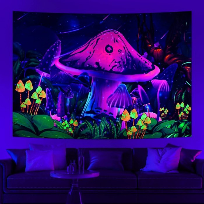 Mushroom - UV Reactive Tapestry with Wall Hanging Accessories UK