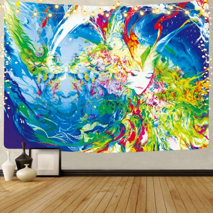Psychedelic Girl - UV Reactive Tapestry with Wall Hanging Accessories UK
