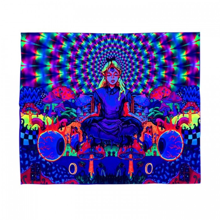 Psychedelic Girl - UV Reactive Tapestry with Wall Hanging Accessories UK