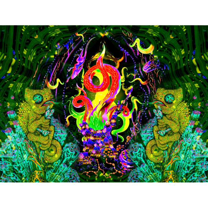 Psychedelic Snake - UV Reactive Tapestry with Wall Hanging Accessories UK