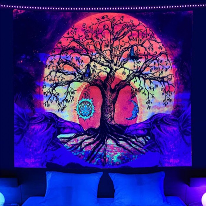 【Unique Design】Our luminous tapestries are printed with advanced HD printing technology, with high-definition patterns, bright colors and no fading. Fluorescent effects can fill your room or dorm with mystery and psychedelia, making a great decorative element for your room.