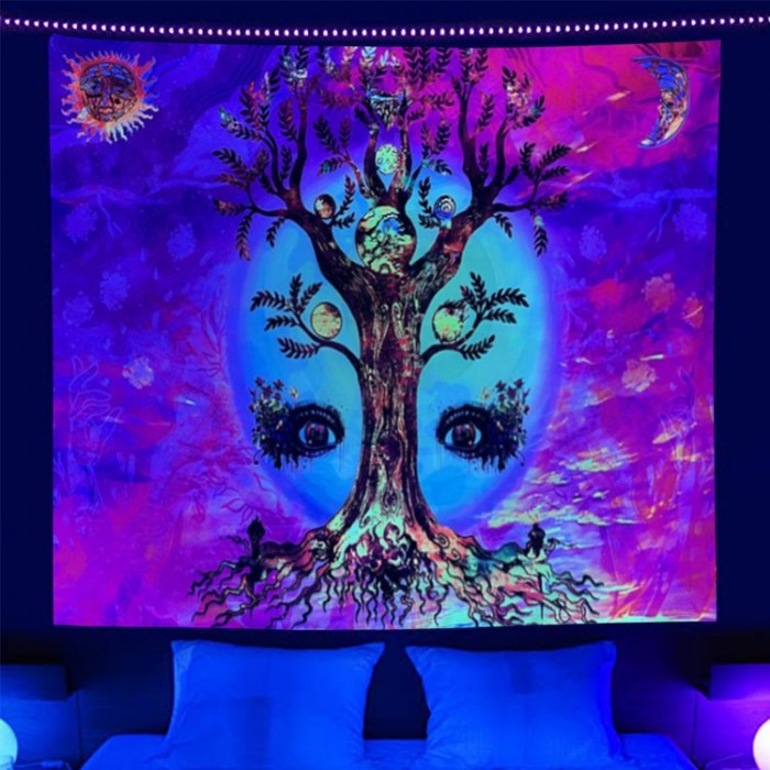 【Unique Design】Our luminous tapestries are printed with advanced HD printing technology, with high-definition patterns, bright colors and no fading. Fluorescent effects can fill your room or dorm with mystery and psychedelia, making a great decorative element for your room.