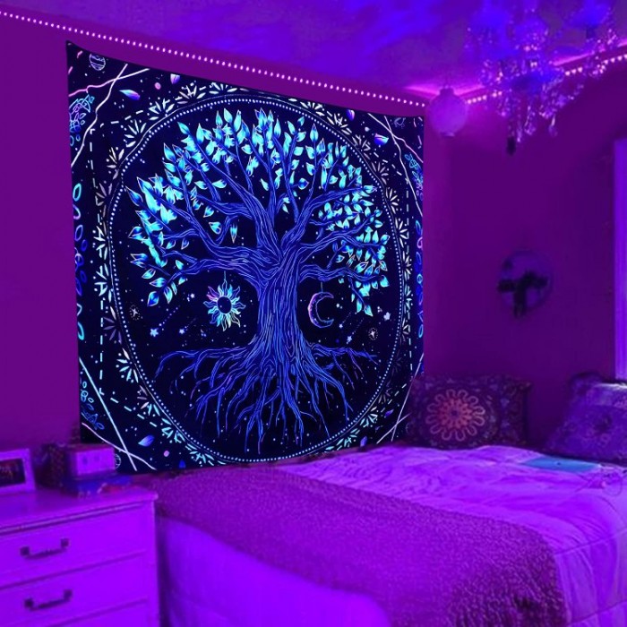 【Unique Design】Our luminous tapestries are printed with advanced HD printing technology, with high-definition patterns, bright colors and no fading. Fluorescent effects can fill your room or dorm with mystery and psychedelia, making a great decorative element for your room.