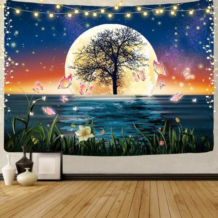 Reflection by the river - UV Reactive Tapestry with Wall Hanging Accessories UK
