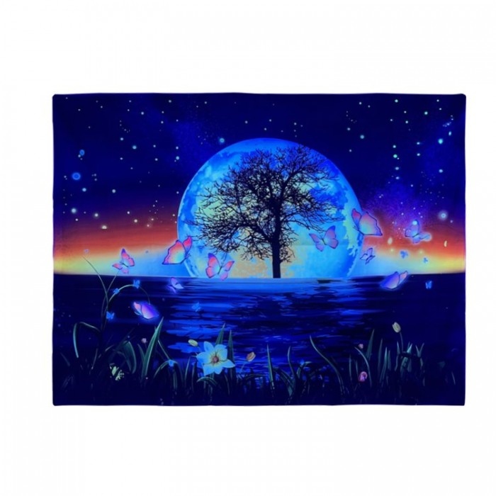【Light Effect Response】 Using special ink and advanced thermal transfer technology, the fluorescent tapestry can glow under UV light in a dark environment, and the whole tapestry will look cool.