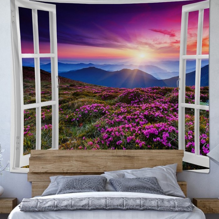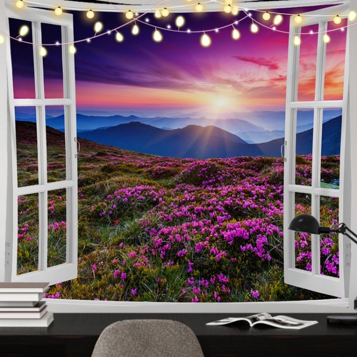 Sea Flowers Window Tapestry Hanging Wall Carpet Blanket Bedroom Bedspread Dorm Room Art Decor Background Cloth Mat Home Decoration