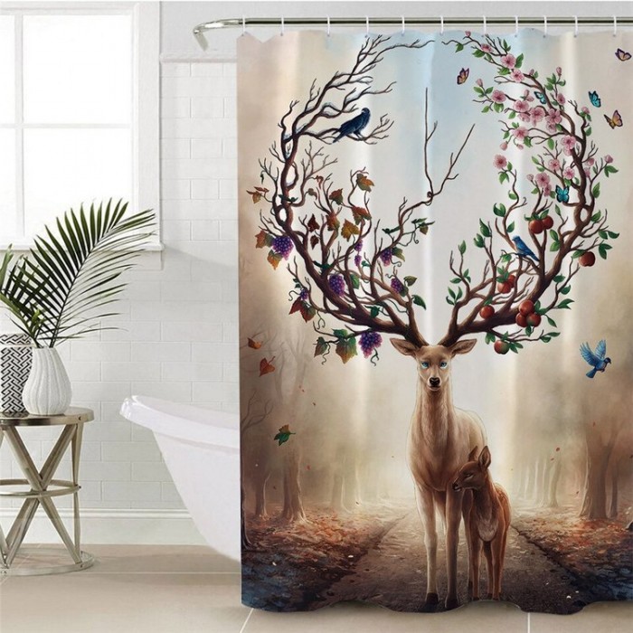 3D Print Shower Curtains Polyester Waterproof Bathroom Cloth Washable Bath Screen with 12 Hooks Home DecorationFeature:1. 3D printing effect, high-def..