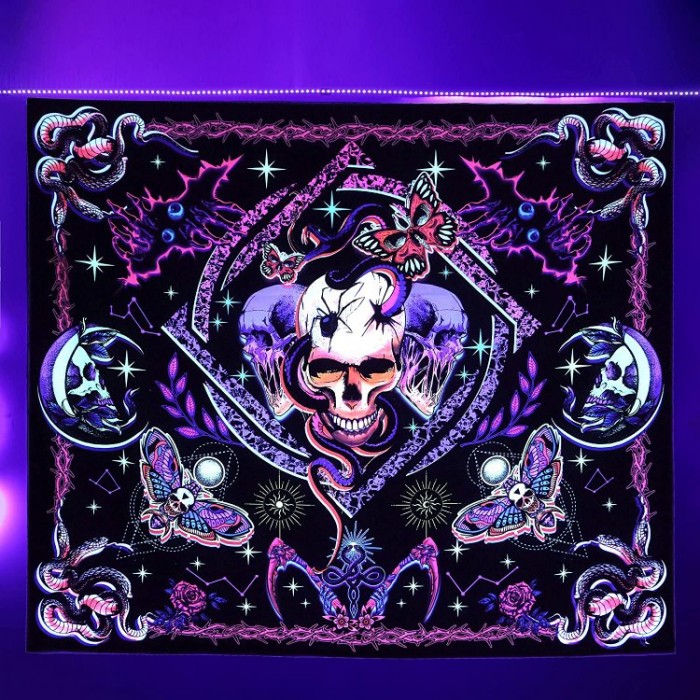 Skull - UV Reactive Tapestry with Wall Hanging Accessories UK