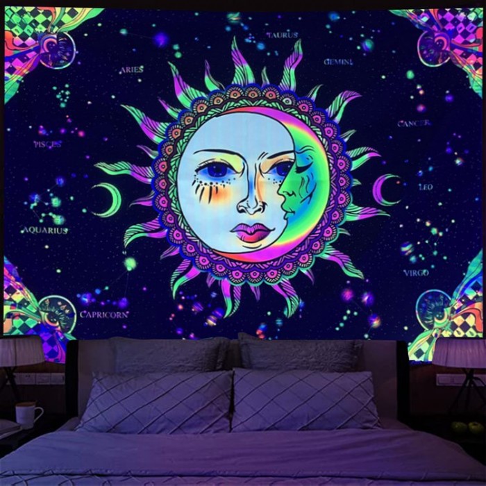 Sun&Moon - UV Reactive Tapestry with Wall Hanging Accessories UK