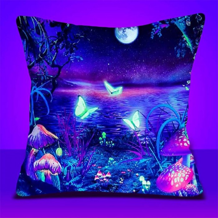 Feature:Light Effect Response - Using special ink and advanced thermal transfer technology, the fluorescent Pillowcase can glow under UV light in a da..