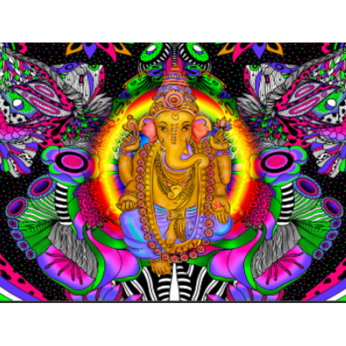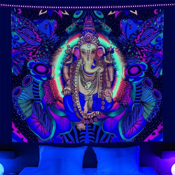 Elephant Buddha - UV Reactive Tapestry with Wall Hanging Accessories UK