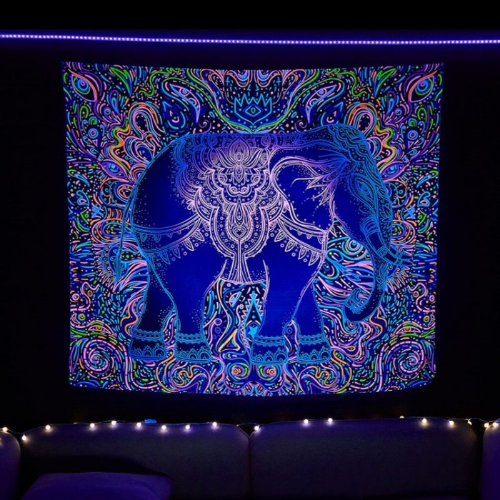 Elephant - UV Reactive Tapestry with Wall Hanging Accessories UK