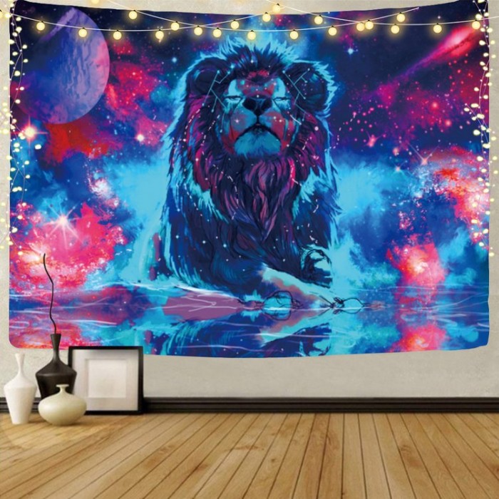 Lion - UV Reactive Tapestry with Wall Hanging Accessories UK