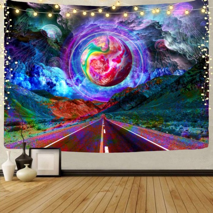 Moon highway - UV Reactive Tapestry with Wall Hanging Accessories UK