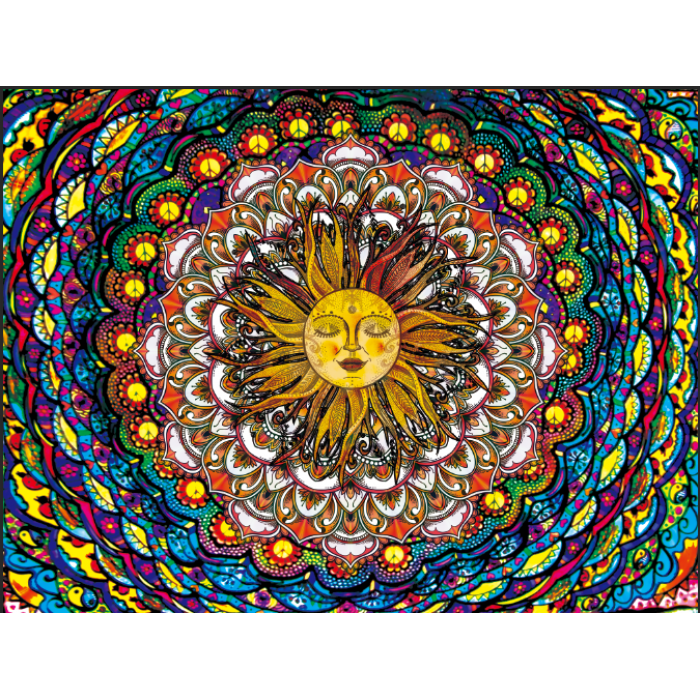 Moon Mandala - UV Reactive Tapestry with Wall Hanging Accessories UK