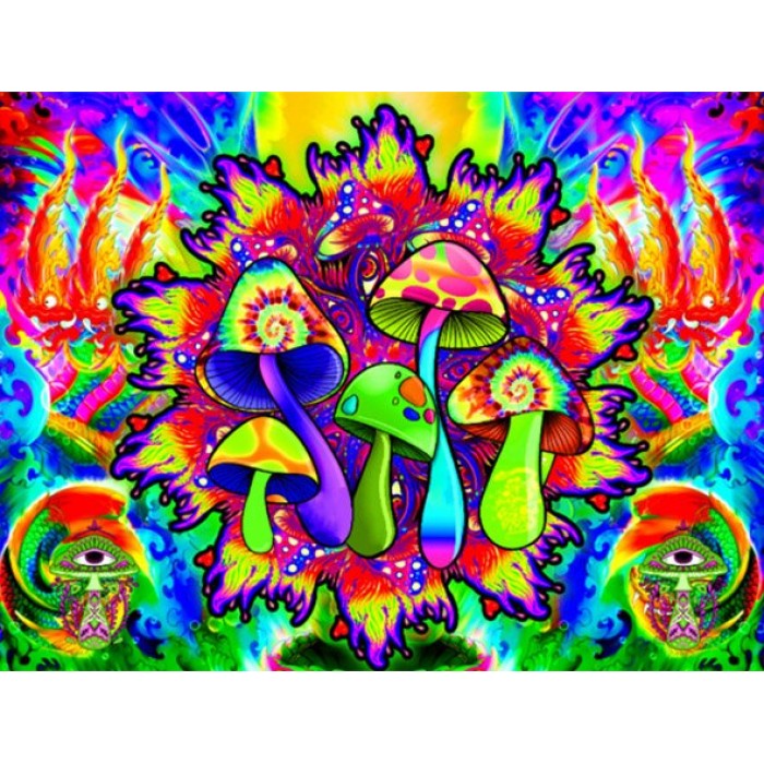 Mushroom - UV Reactive Tapestry with Wall Hanging Accessories UK
