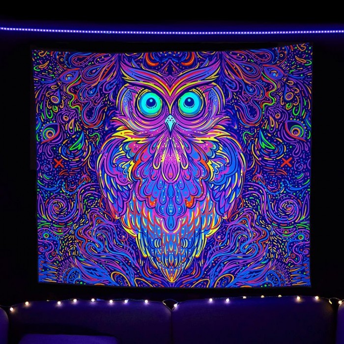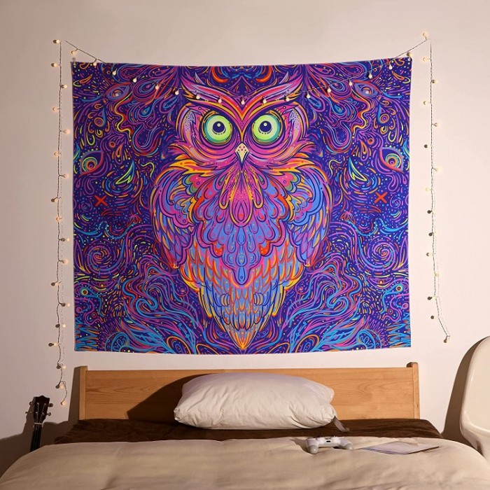 Owl - UV Reactive Tapestry with Wall Hanging Accessories UK