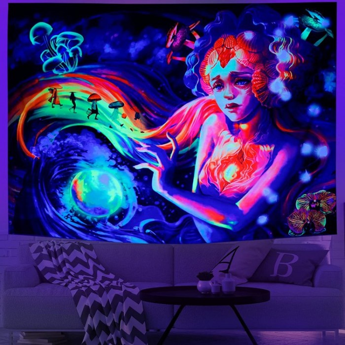 【Unique Design】Our luminous tapestries are printed with advanced HD printing technology, with high-definition patterns, bright colors and no fading. Fluorescent effects can fill your room or dorm with mystery and psychedelia, making a great decorative element for your room.