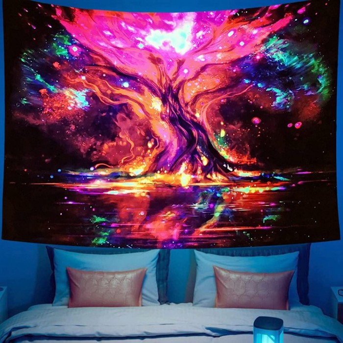 Tree - UV Reactive Tapestry with Wall Hanging Accessories UK