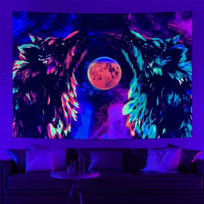 Wolf - UV Reactive Tapestry with Wall Hanging Accessories UK