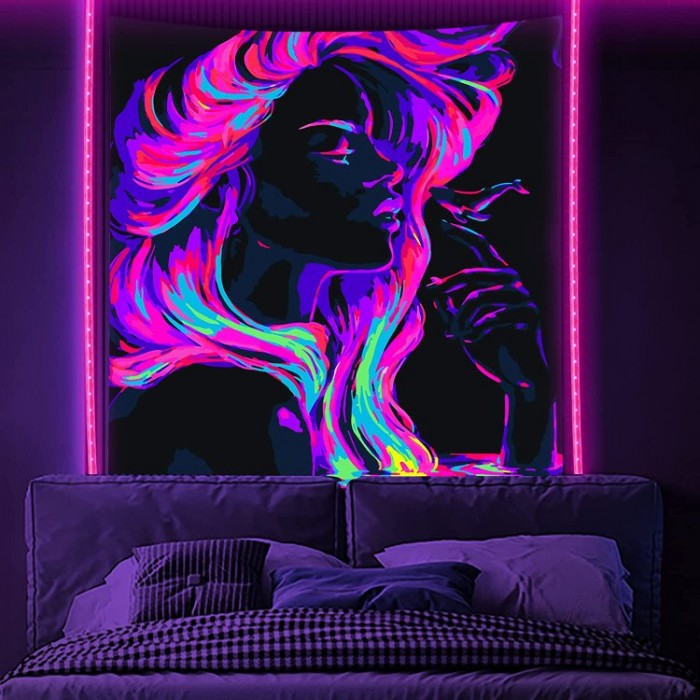 Woman - UV Reactive Tapestry with Wall Hanging Accessories UK